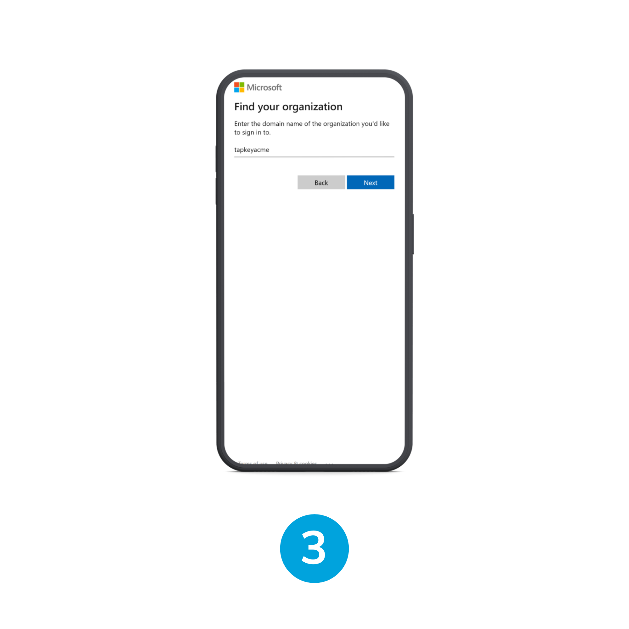 1. In the Find your organization type the target organization domain and tap “Next”