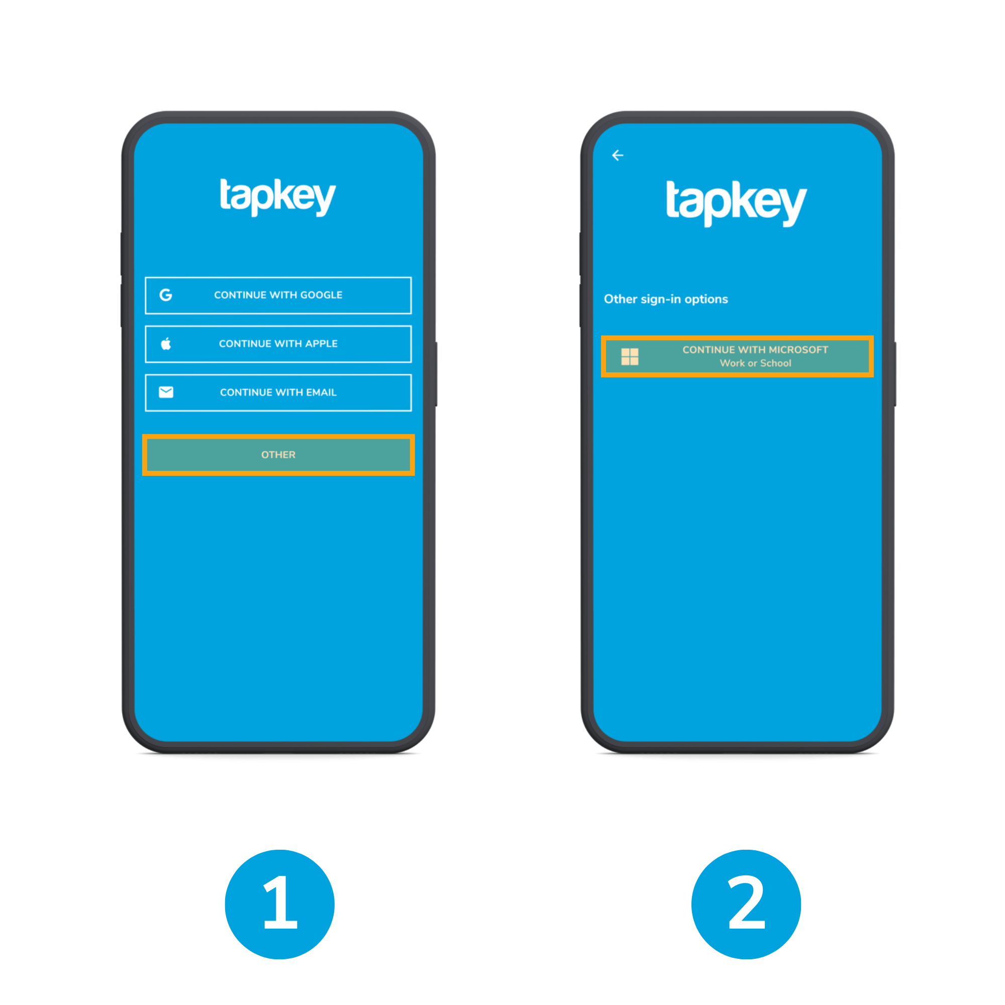 1) To login, open the Tapkey App and tap “Other”.